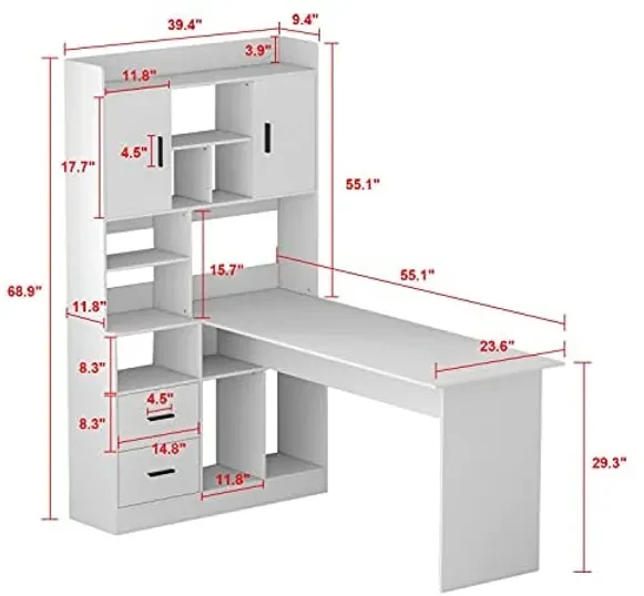 FOGUID Corner Desk with Hutch Shelves Drawers White