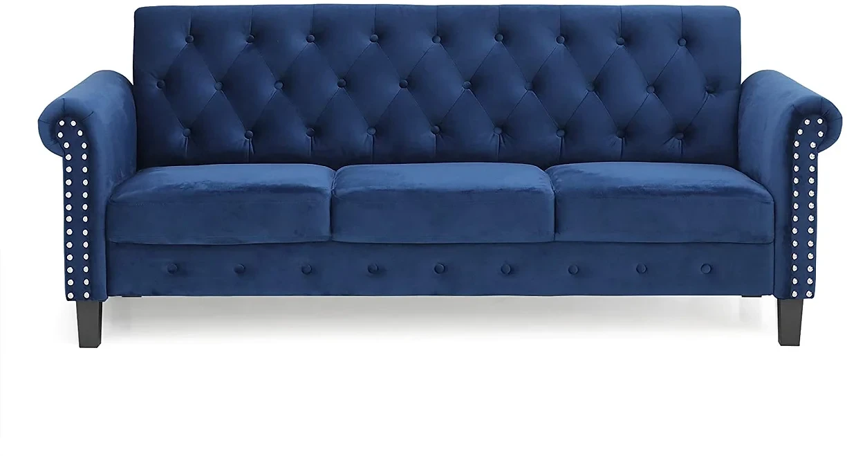 Furinno Bastia Vintage Button Tufted 3-Seater Sofa, Navy Velve