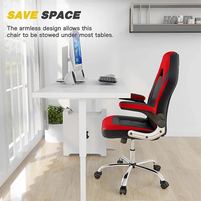• Chair with Flip-up Arms - This racing style gaming chair is equipped with flip-up arms for position reinforcement. The armrests can flip up when they’re not in use, ideal if you want to get something more compact or want a little bit of freedom in your movements. Also keeping you comfy for long hours of game or work.