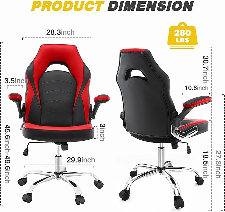 Gaming Ergonomic Computer Gamer Chairs with flip arm - Red and Black