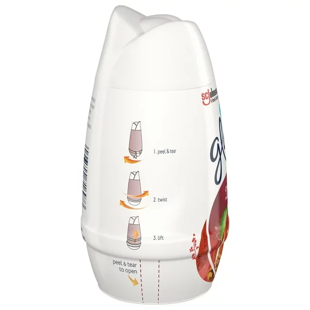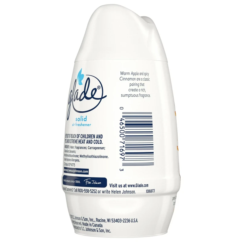 Meet the Glade Solid Air Freshener ? just twist to release the rich fragrance within and set the intensity by adjusting the lid. With a variety of scents to choose from, it's the perfectly practical way to add continuous fragrance to your home. The scent of crisp McIntosh apples, cinnamon, and nutmeg in Glade Apple Cinnamon fills your home with the welcoming impression of spiced mulled cider, and feelings of genuine warmth and comfort.