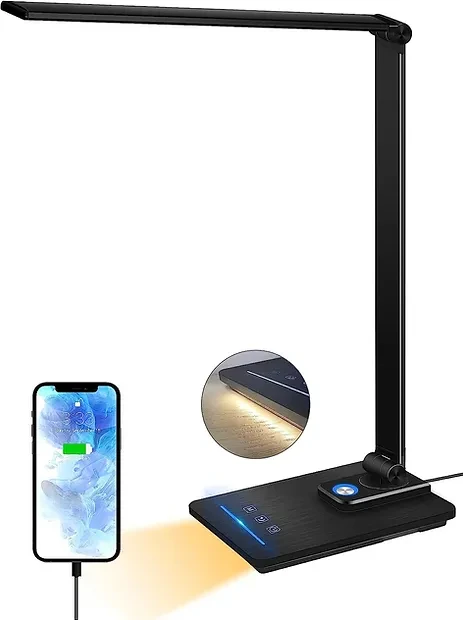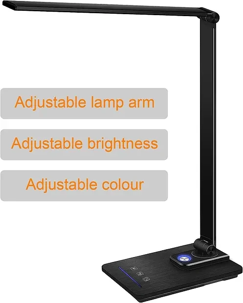 Gooseneck Desk Lamp, Desk Light with USB Port, 3 Brightness Levels, 5 Color