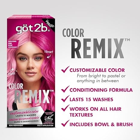 Got2b Color Remix, Customizable Semi-Permanent Hair Color, 093 Shocking Pink