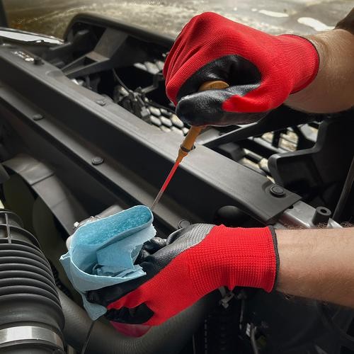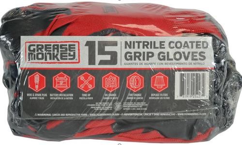 Grease Monkey Nitrile-Coated Work Gloves are perfect for a variety of jobs. Keep a steady grip even with oils and fluid in the garage. Take on plumbing tasks under the sink with ease. These nitrile-coated work gloves are lightweight and allow for maximum range of motion. The nitrile coating protects your hands and provides a strong grip. On the back side, it's a different story. The knit back keeps your hands dry by allowing them to breathe while working.