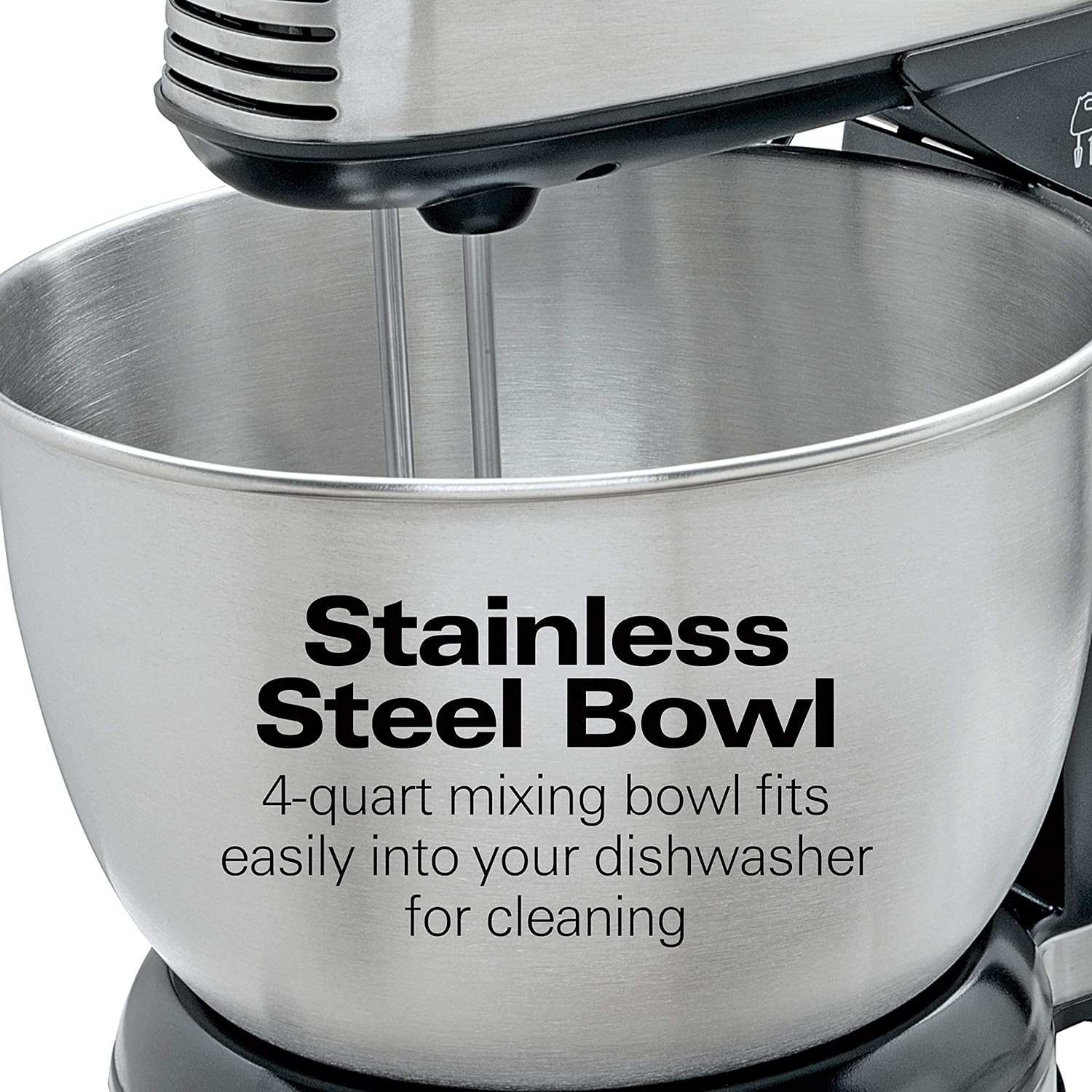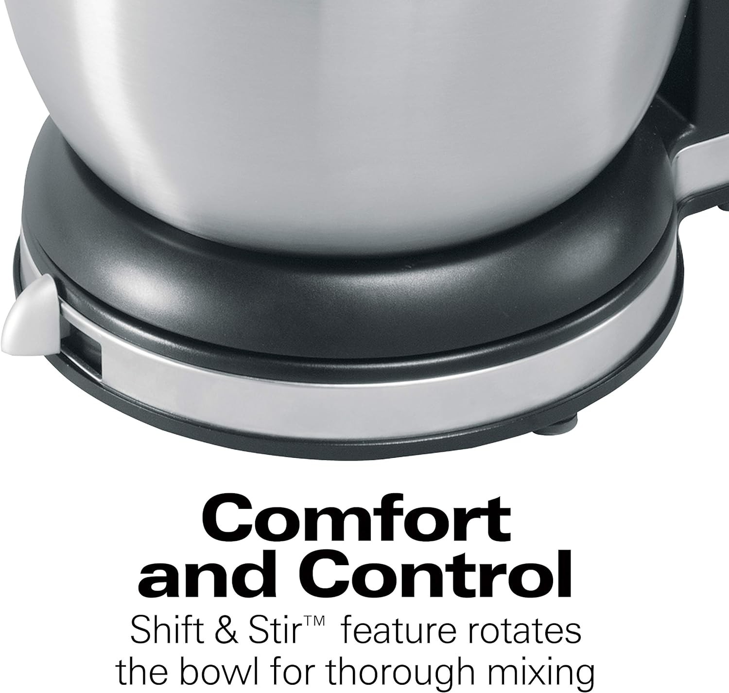 The Hamilton Beach Classic Chrome Hand/Stand Mixer includes a variety of attachments, including traditional beaters, a whisk, and dough hooks. Its 6 speeds and QuickBurst button allow you to tailor mixing and beating to achieve your desired result. This versatile kitchen countertop appliance features a 4-quart stainless-steel bowl, a Bowl Rest mixer stabilizer, and 290 watts at peak power. With the traditional beaters, whisk and dough hooks that come with your Hamilton Beach 6-Speed Classic Stand Mixer, you'll be pushing culinary boundaries with ease! ? Doubles as a hand mixer (mixer unlocks from stand for mixing versatility) ? 290 Watts of peak power makes mixing easy.