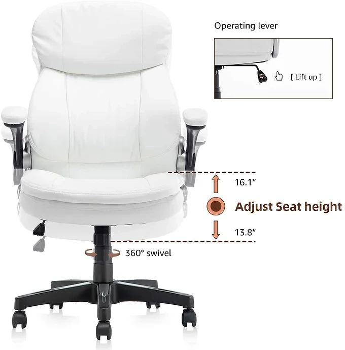 • ULTRA-HIGH COST PERFORMANCE – Our task chair is wrapped in premium waterproof PU leather, environmentally friendly as well. The 3-stage cast-iron pressure rod maintains the stability and flexibility of the seat. The soft memory sponges and 5 quiet-rolling nylon casters add more value for money.