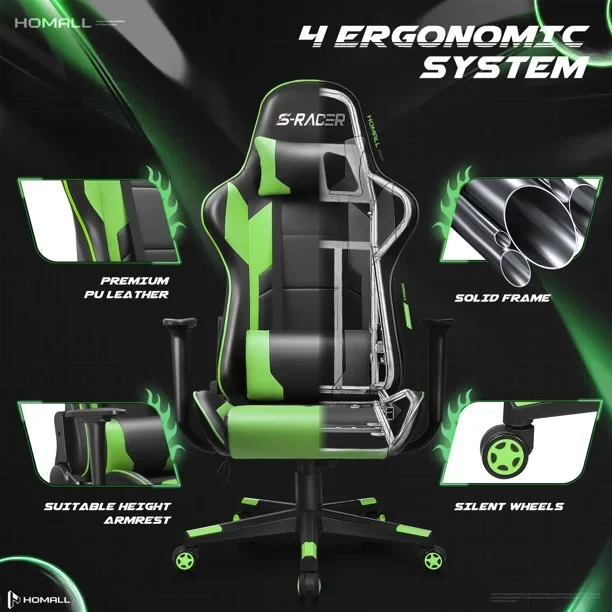 Homall Gaming Chair office Chair with Headrest & Lumbar Support, Green