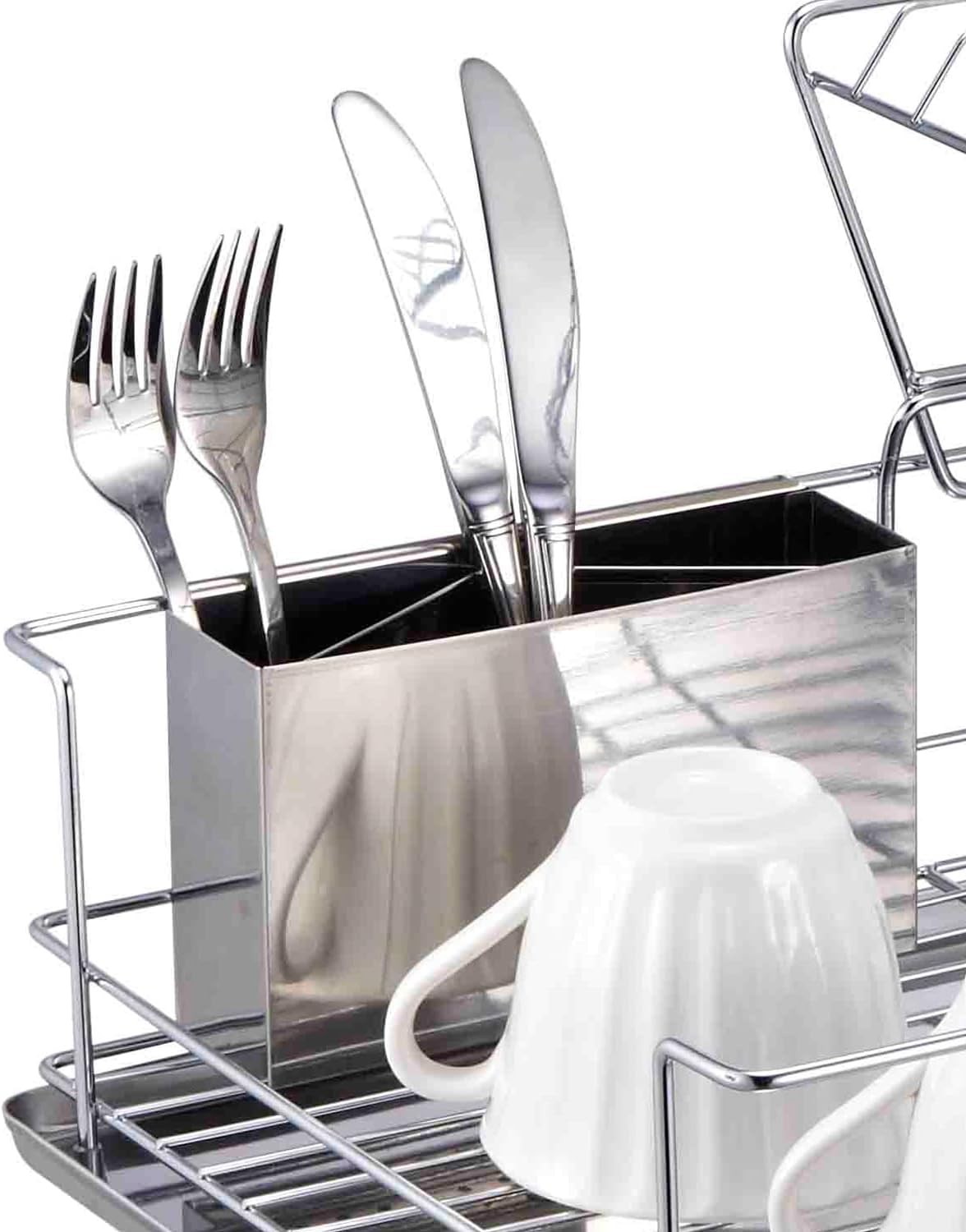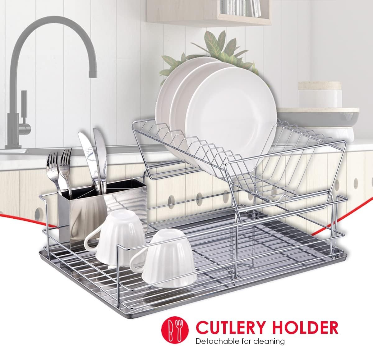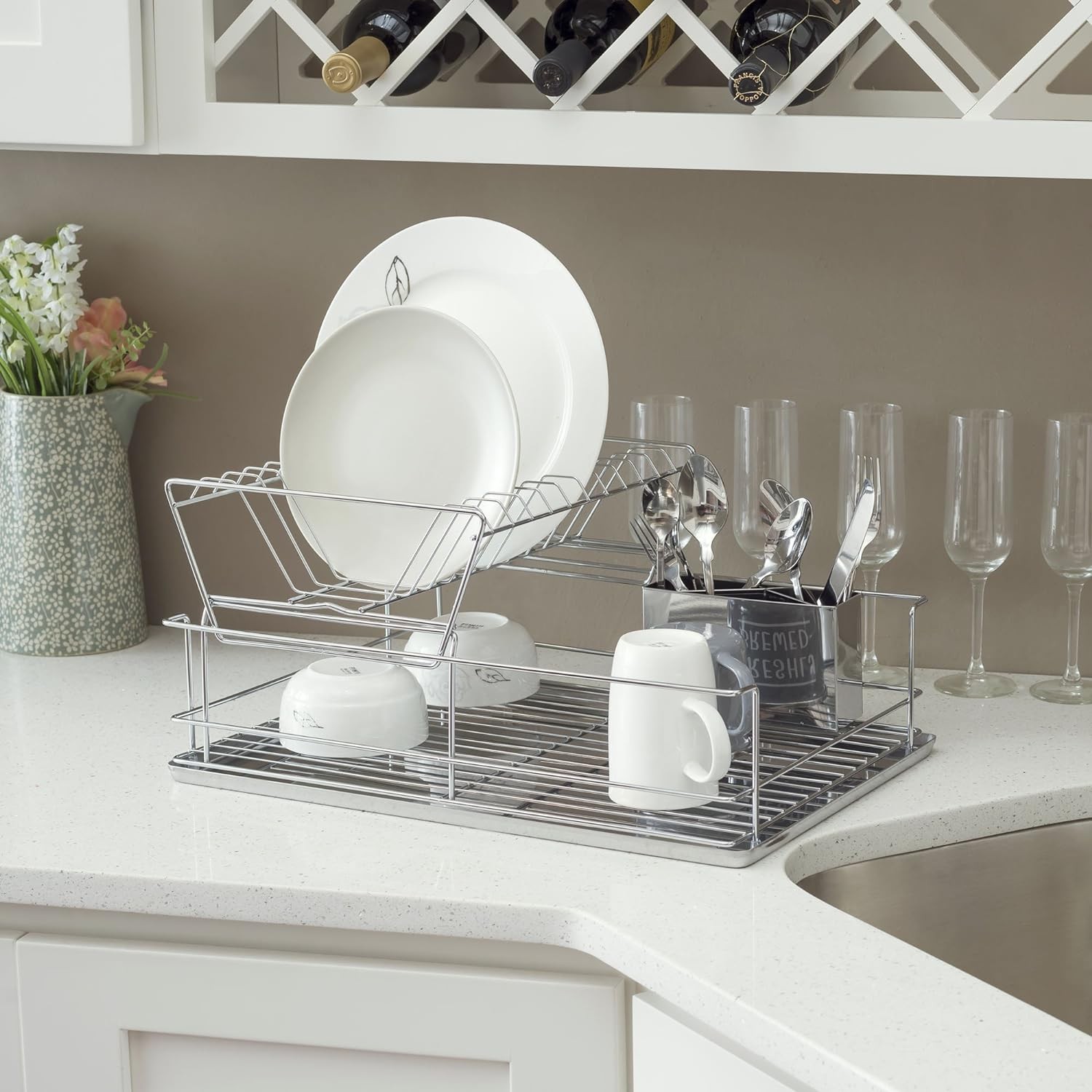 • 3-piece dish rack with tray offers two tiers of space for draining and drying after washing
