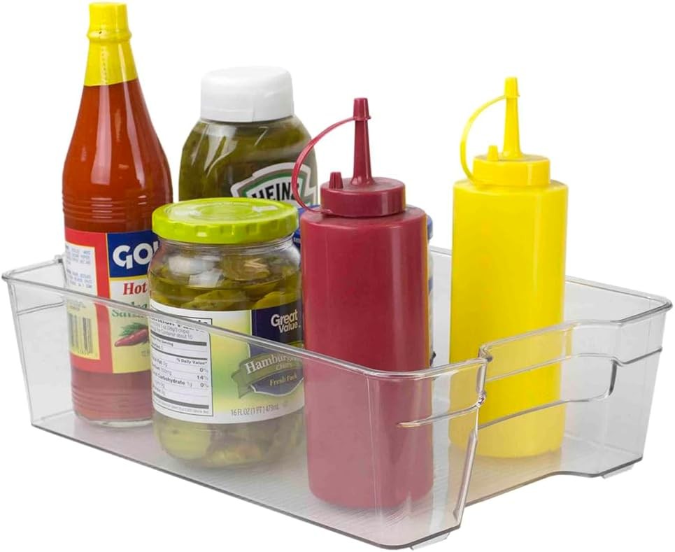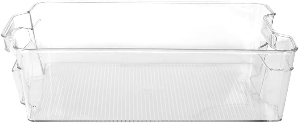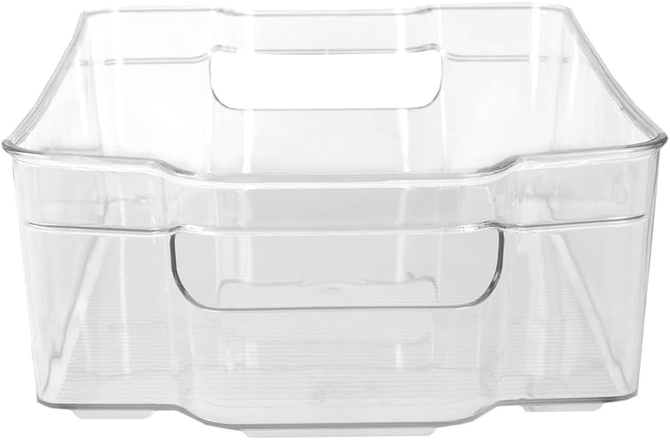 • Stackable, multi-purpose plastic storage bin from Home Basics is perfect for use in the closet, pantry or fridge