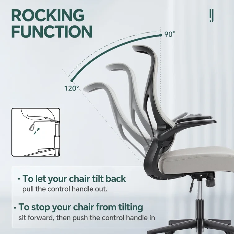 - Flip armrests: This office chair is equipped with flip armrests, which can be flipped up and used as armless chairs or be pushed under the table when not in use to maximize your space use ratio.