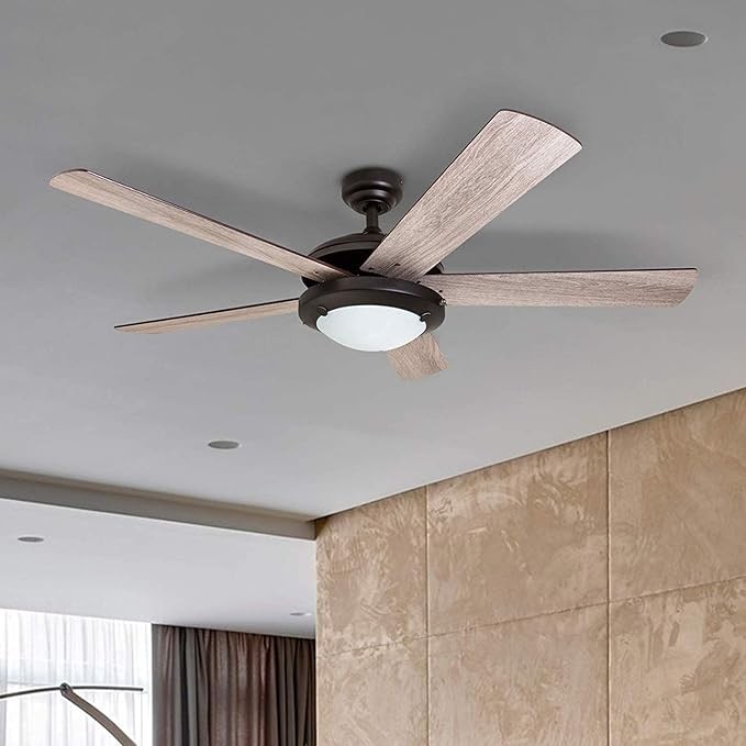 MOUNTING OPTIONS: Indoor 52 inch LED ceiling fan with lights and remote control, 2-position mounting system allows for standard or angled mounting, ideal for large rooms up to 400 square feet (20 feet by 20 feet)