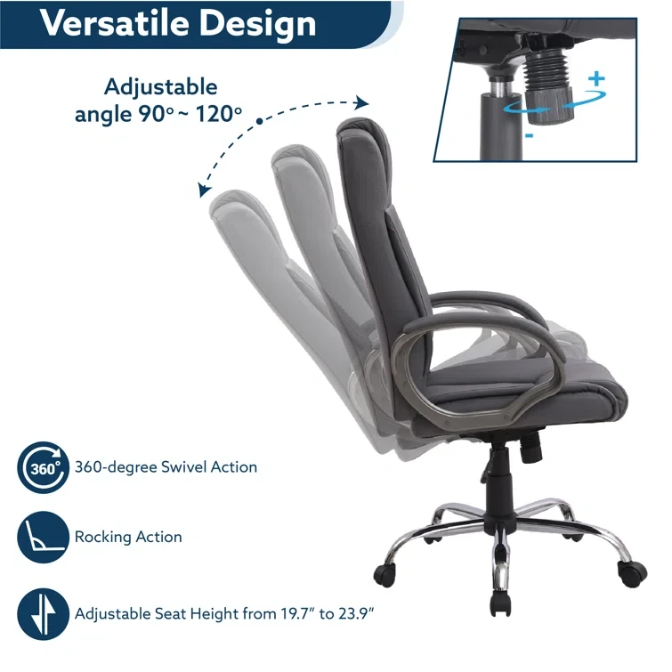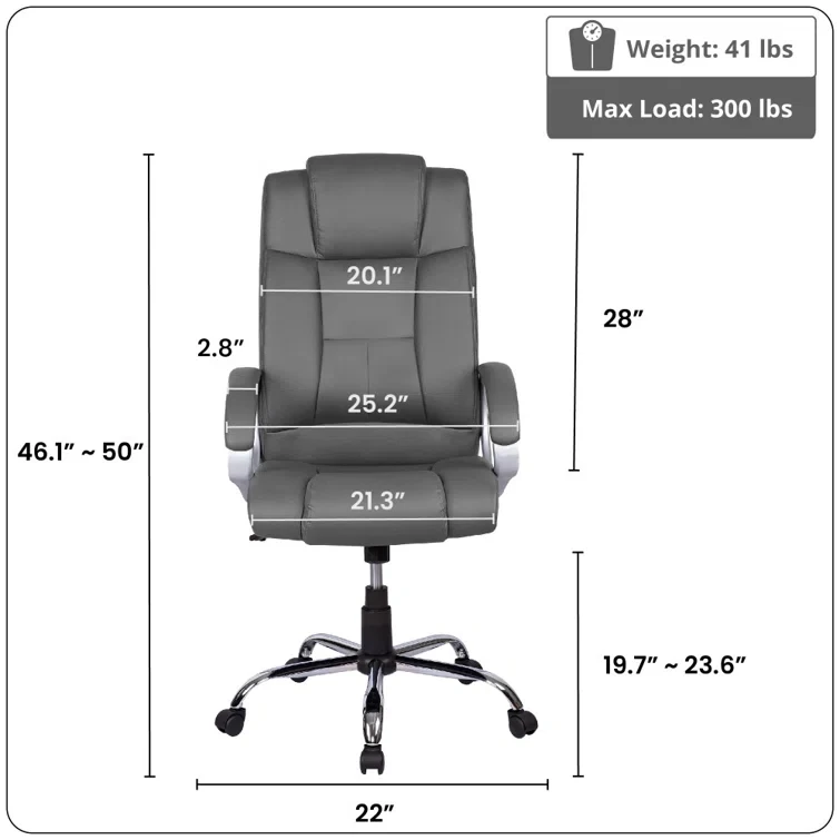 Tired of those ancient and uncomfortable computer chairs that hurt your back while you sit for hours working? Say less, the Jakyrah high-back executive office chair is brand new and ergonomic; attaining top-notch features that will have you saying goodbye to your ongoing frustration. Halle’s high back provides posture and lumbar support with all-in comfort and durability straight from its special air leather fabric. May your arms feel weary no more as its padded air-leathered arm handles allow you to rest your arms comfortably and work at ease. The seat design eliminates leg fatigue and is styled to look great in every office or home. Swivel in place or around the room with chair rotation access and adjust your height and tilt tension with built-in handles beneath the chair. Receive that executive office chair sensation at the office today.
