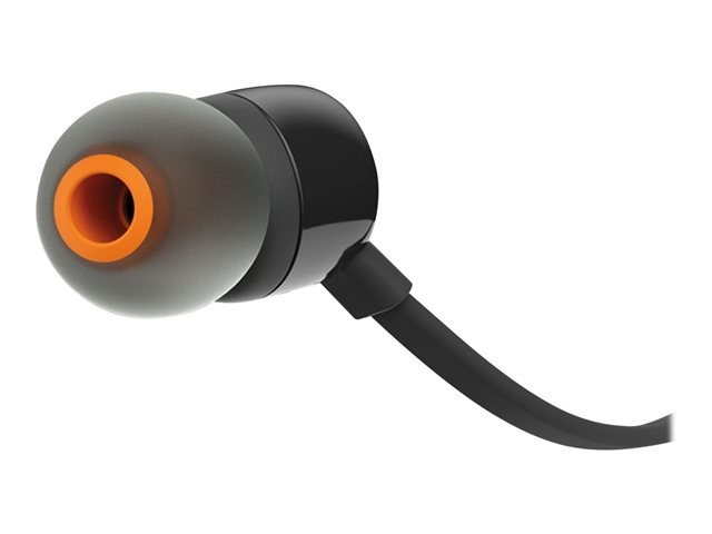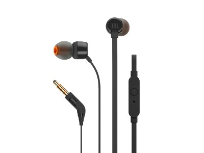 JBL T110 in-ear headphones are lightweight, comfortable and compact. Under the durable earpiece housing a pair of drivers punch out some serious bass, reproducing the JBL Pure Bass sound you've experienced in concert halls, arenas and recording studios around the world. In addition, the single-button remote on a tangle-free flat cable lets you control music playback, as well as answer calls on the fly with a built-in microphone. Making the JBL T110 your everyday companion for work, at home and on the road.