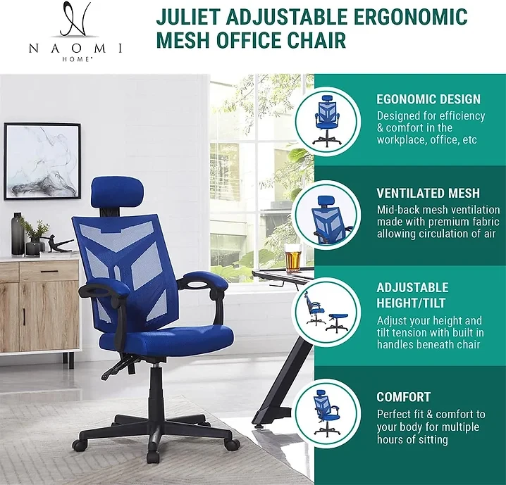 • EASY MANEUVERABILITY: Juliet Ergonomic Desk Chair is easy to move from one place to another to reach things away from you and comes with rolling caster wheels for smooth movement on surfaces.
