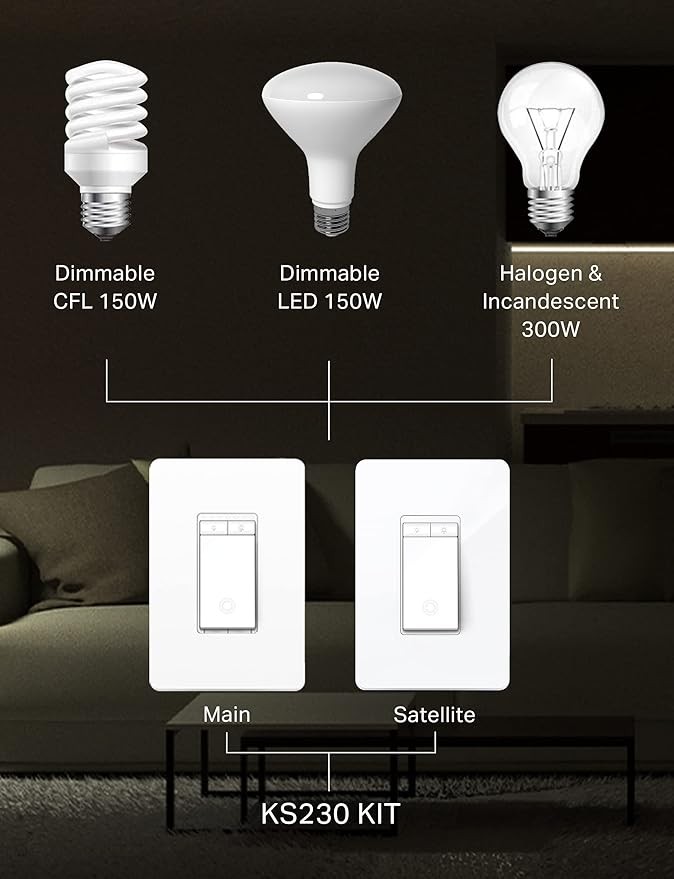 【TRUSTED & RELIABLE】ETL certified. Supports incandescent bulbs up to 300W or dimmable LED bulbs up to 150W. 2-year warranty. Kasa is trusted by over 7 Million users.