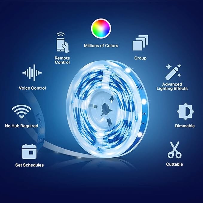 [Animated lighting effects] The Kasa Smart light strip features advanced animated lighting effects, with many different preset effects to choose from. A unique lighting experience for your TV, gaming rig, parties or general ambiance.