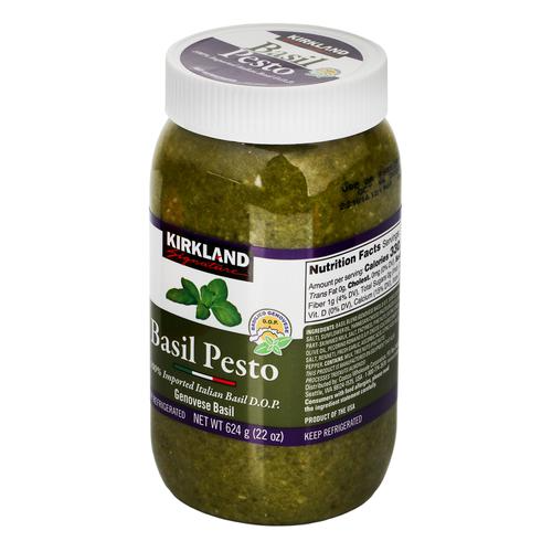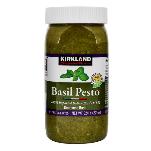 Basil is the key ingredient in this Kirkland Signature Basil Pesto, which brings out the natural taste of the basil with extra virgin olive oil and parmesan cheese. This product is made from 100% imported Italian basil, which makes it a high-quality product perfect for original Italian recipes.