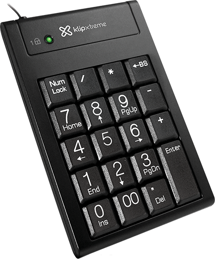 The Klip Xtreme KNP-100 numeric keypad is perfect for typing numbers and playing games while you're on the move. Using USB drive Plug-and-Play technology, this keypad gives laptop and notebook users the instant advantage of a 19-key external numeric keypad for use anywhere you're on the go. Its sleek design matches most laptops, and it's compact, slim design and retractable cable makes it easy to carry. Expand your options with this lightweight, portable keypad that makes typing numbers anywhere a snap!