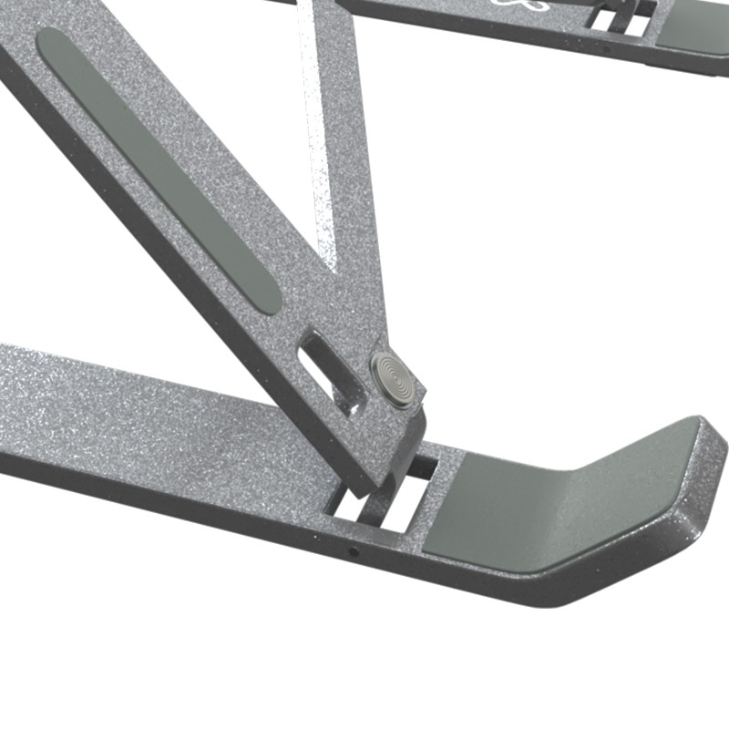 A comfortable posture is key to being productive and healthy. This foldable laptop stand made of aluminum is light yet stable to hold devices up to 15.6 inches, so you can browse, type, or read at ease knowing that your device is secure thanks to its silicone pads that keep the laptop or tablet in place. In addition, the pads on the legs and back of the stand protect the device from scratches. Adjust it to the screen height that works for you with seven height settings, and when you are done just fold it and carry it with you in its storage bag. It makes for the perfect portable standing desk to restfully work or study.