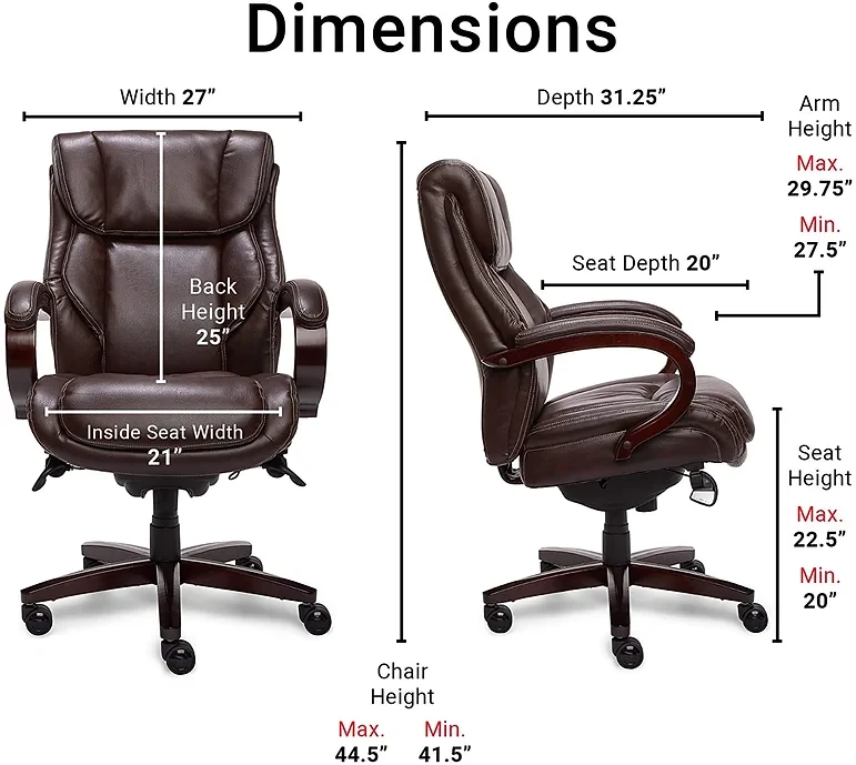 • Chair Dimensions: 27"W x 31.3"D x 44.5"H | Seat Depth: 20" | Seat Width: 21" | Weight Limit: 250 lbs | Product Weight: 54.7 lbs