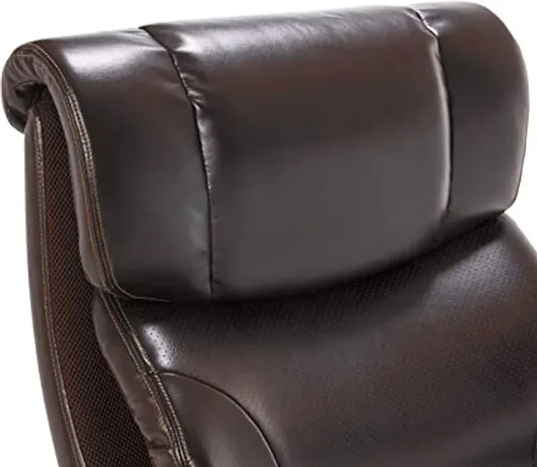 Specially designed to support up to 400 pounds, the La-Z-Boy Fairmont Big and Tall Executive Office Chair offers advanced performance features for exceptional comfort during work or play. This spacious and ergonomic office chair features memory foam cushions, which are made with an advanced layering system that offers zone-based support with cushioning in the areas you need it most. Strategically placed plush body pillows and a padded headrest combine to provide neck support and minimize pressure points. The fully adjustable controls, including height, tilt, and lift adjustments, ensure optimized body alignment and a personalized fit. Created with industrial-grade components for reliable and long-lasting use, this leather office chair is constructed with a thick plywood sub core, reinforced back bar, and heavy-duty casters. Rich brown bonded leather and hand-sculpted wooden arms create an elegant blend of traditional style and modern performance that is ideal for any office, home, or entertainment space.