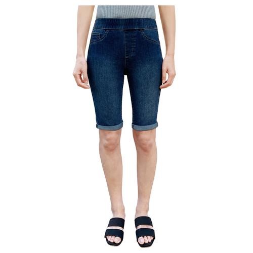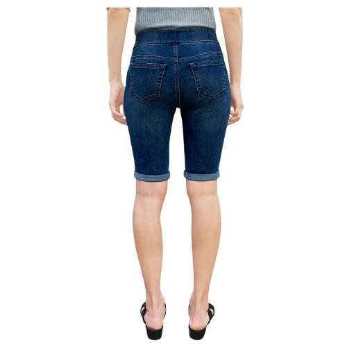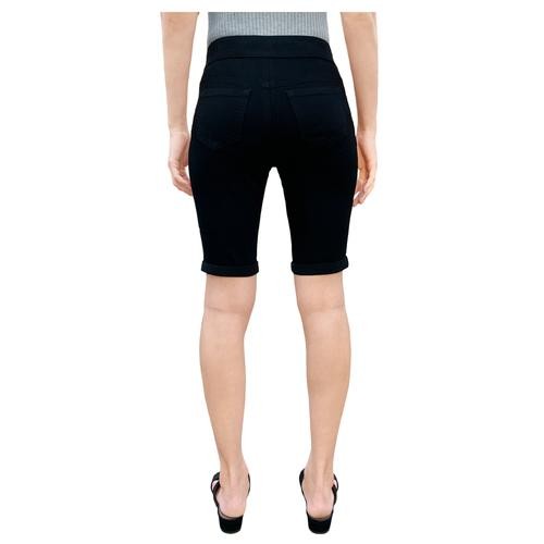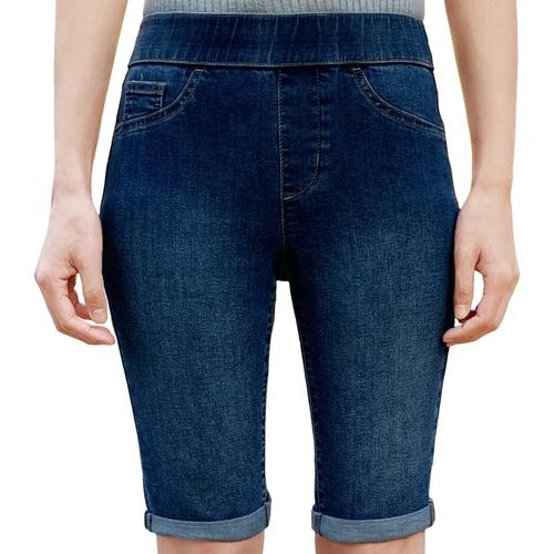 This ladies' high-rise bermuda shorts with roll-up hem detail features a pull-on elastic waistband that provides all-day support and comfort. With the perfect amount of stretch, these shorts are very flattering. These will quickly become a staple in your wardrobe