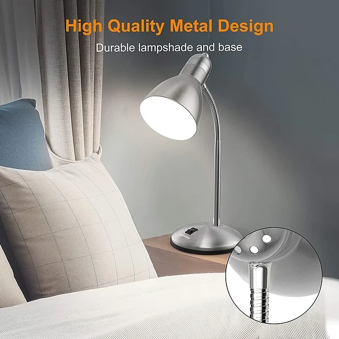 • Stylish Design: A nice, low-cost, and functional metal desk lamp to meet your basic lighting needs, perfect for reading, also elegant looking as a decoration.