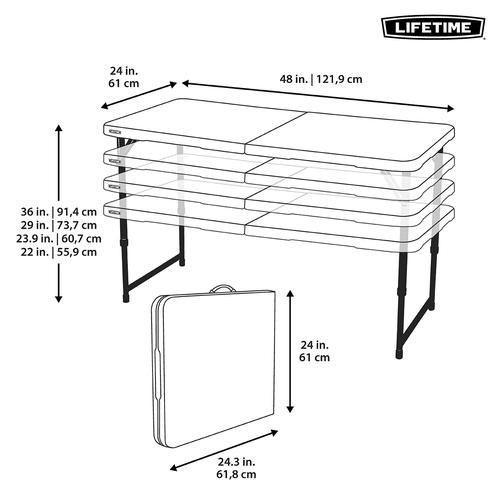 Adjustable and lightweight commercial table is easy to transport, its design makes it lightweight, easy to set up and store. Made to be used indoors and outdoors. *THIS ITEM DOES NOT QUALIFY FOR STANDARD OR EXPRESS DELIVERY. A PRICESMART REPRESENTATIVE WILL REACH OUT TO YOU WITHIN 48 HOURS BY PHONE TO ARRANGE ALTERNATIVE DELIVERY. AFTER PHONE CONTACT, DELIVERY TIME IS TYPICALLY 3 TO 7 DAYS.