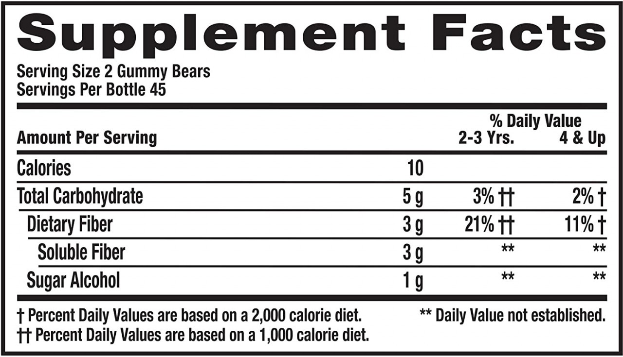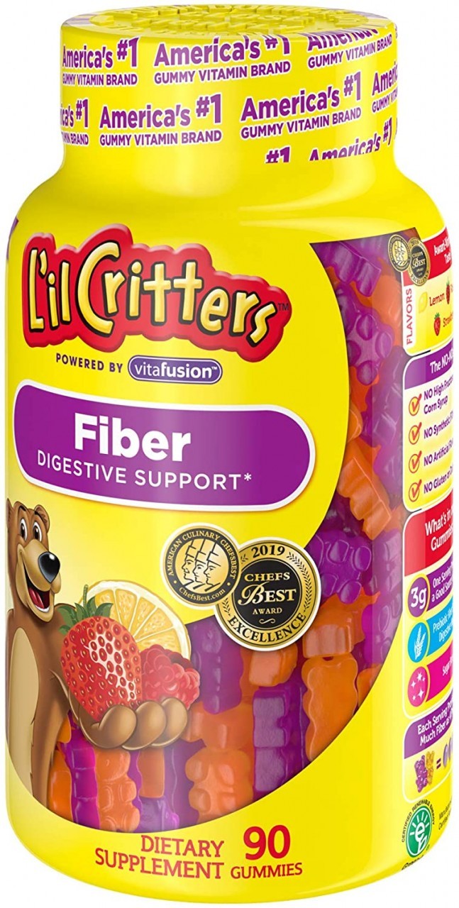 L'il Critters Fiber Gummy Bears is a great way to support your child's digestive system with 3 grams of fiber in every delicious gummy serving;[2] That's more fiber than in 1 cup of asparagus! L'il Critters Fiber Gummy Bears are also sugar free. Did you know? - One serving of L'il Critters Fiber Gummy Bears has as much fiber as four prunes. [2] These statements have not been evaluated by the Food and Drug Administration. This product is not intended to diagnose, treat, cure or prevent any disease. The ChefsBestExcellence Award is awarded to brands that surpass quality standards established by independent professional chefs.