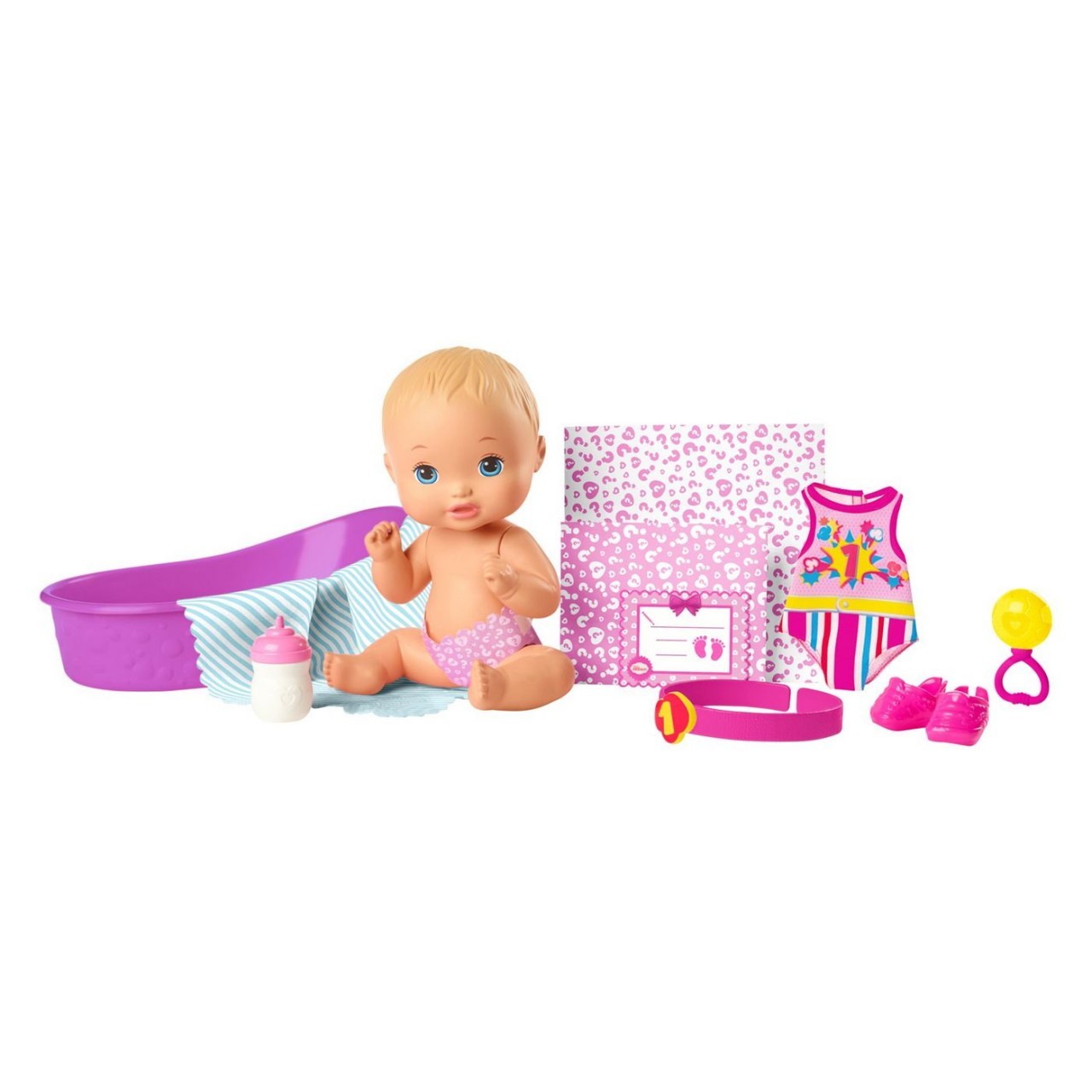 - It's surprise and nurturing play all in one with the Wonder Nursery dolls! - Find out what personality and style your Little Mommy newborn has- Put bottom down in the tub and swish her around to reveal a new themed diaper- Dip one of the surprise gifts in the tub to reveal a themed Bodysuit and birth certificate - Dip the next surprise gift and you will reveal a themed headband, pair of shoes, and a toy for baby - Time to dress up your Little Mommy in her stylish new outfit that reflects her personality!