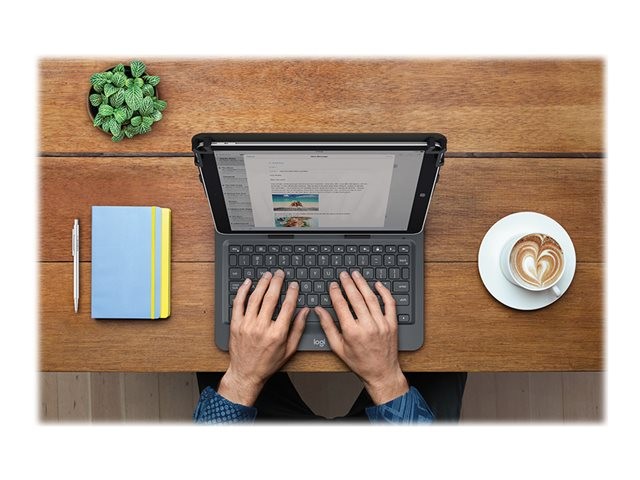 Enjoy comfortable laptop-like typing on your favorite 9-10 inch tablet. Logitech Universal Folio locks your tablet at an optimal angle for typing and holds firm on any surface from a desk to your lap. Designed to protect your tablet from everyday wear and tear including spills. Universal Folio is easy to setup, and features a reliable Bluetooth 3.0 connection. Keyboard sleep mode preserves power of the long lasting 2-year battery. Dedicated function and shortcut keys work with iOS, Android, or Windows, making Universal Folio an indispensable tool for tablet lovers. System Requirements: iOS/ Android / Windows OS|Height: 9“ — 10.3” (229 mm - 261 mm)Width: 6.2”—7.3” (158 mm - 185 mm)Depth: up to 0 .4“ (10 mm)|iPad Air 2iPad AiriPad 2 iPad 3iPad 4Samsung Galaxy Tab A-9.7 inSamsung Galaxy Tab S-10.5 inSamsung Galaxy Tab S2-9.7 inSamsung Galaxy Tab 4-10.1 inSamsung Galaxy Tab 10.1 inSamsung Galaxy Note 10.1 in(2013)Samsung Galaxy Tab 2-10.1 inSamsung Galaxy Tab 3-10.1 inSamsung Galaxy Tab S3Amazon Kindle Fire HDX 8.9 inAmazon Kindle Fire HD 8.9 in.