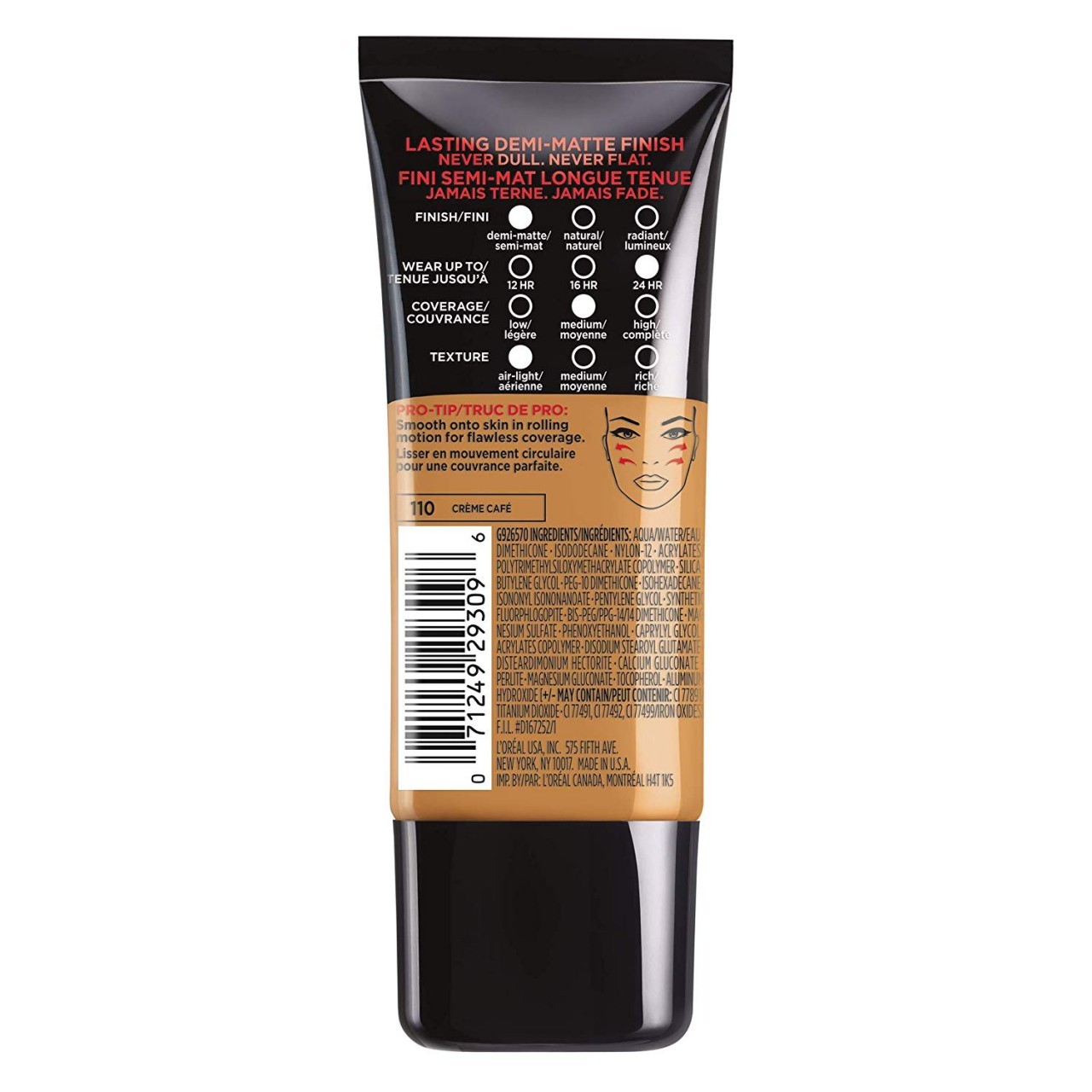 Discover the new pro finish of longwear: up to 24 hour demi matte foundation Get a matte finish that won’t fall flat with L'Oral Paris' Pro-Matte Foundation. Air-light, longwearing liquid foundation provides medium coverage. Lightweight and creamy, matte foundation goes on smooth with a demi matte finish that lasts all day — hiding imperfections for a smooth, clear complexion. • Up to 24HR matte without the flat • Air-light texture, demi-matte finish • Hides Imperfections for a Smooth Complexion • The pro look of longwear Apply Pro-Matte Foundation with fingers or with your favorite foundation brush.