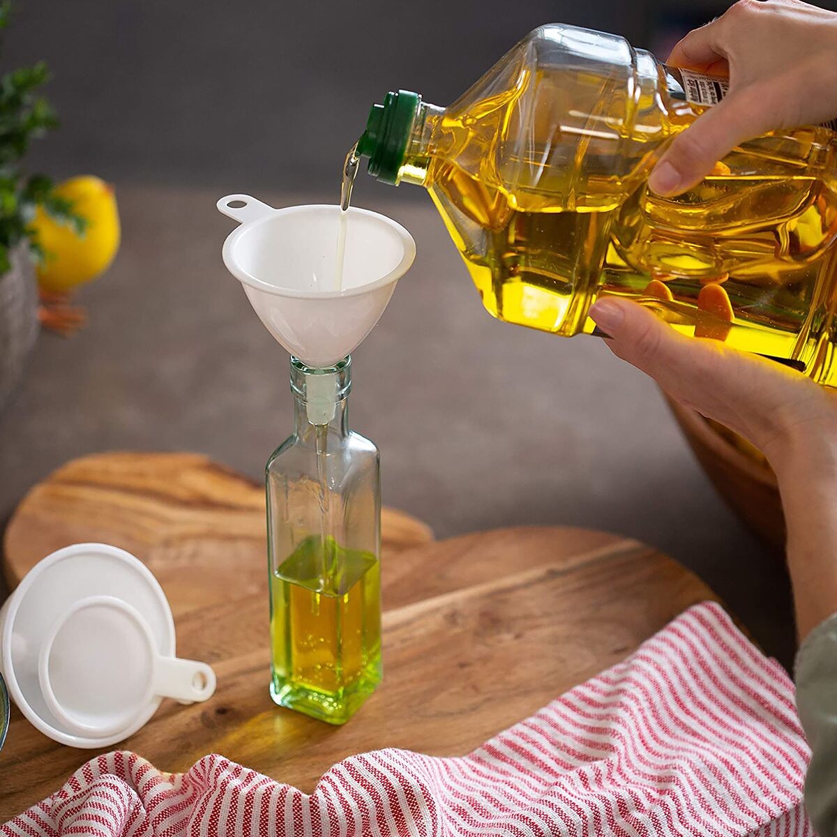 The Chef Craft 3-Piece Plastic Funnel Set White 2.5-3.75inch is the perfect addition to your kitchenware collection. It is made of high-quality plastic to ensure durable use. It is specially designed to transfer liquids without spills. The compact design ensures easy storage in most kitchen drawers. It comes with a ring for convenient use.