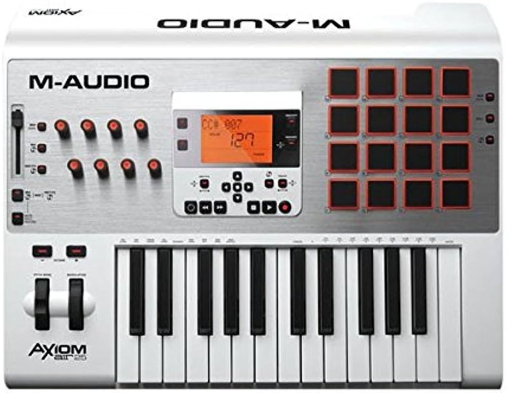 Take command of your studio while achieving higher levels of musical expression with Axiom AIR 25 from M-Audio. Offering unprecedented control, Axiom AIR 25 brings together unmatched ease-of-use plus empowering software to form the ultimate studio centerpiece. Program beats, loops, and grooves using 16 easily assignable trigger pads and 25 solid, responsive keys. Experience hands-on control of your sessions using illuminated knobs, a long-throw fader, plus an array of dedicated transport and software navigation buttons. HyperControl® unites your hardware and software* by automatically mapping the controllers—with no set up chores to perform—so you can start working faster. Completing this powerful package is Ignite™—the music creation software from AIR**—providing the fastest path for capturing ideas and making music.