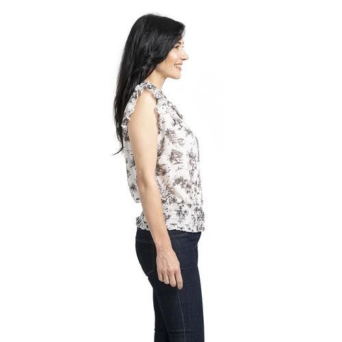 Look casual and comfortable in this loose-fitting sleeveless blouse with a V-neck and gathering at the bottom edge. Fully woven. Perfect on a casual day, for going out or staying in. Soft against your skin and very feminine, to look fresh and fashionable.