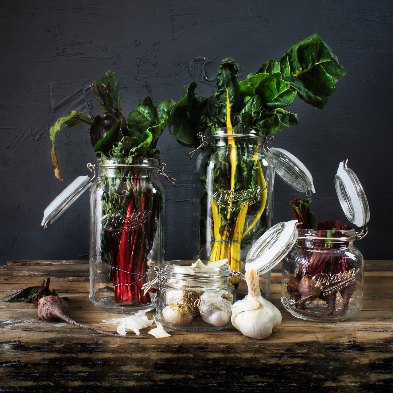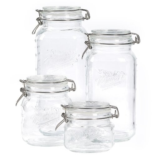 Mason Craft & More 4 Piece Storage Glass Clamp Jar Set