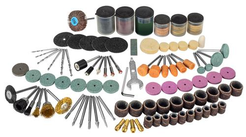 Mastergrip® 215 Piece AC Rotary Tool Set | 120V Rotary Tool | Rated Power: 135W @ 1.1 Amp. | No-load Speed: 8000-33000 RPM (+or - 10%) | Clamp Diameter: 1/8 inch | Electronic Speed Adjustment, Power Cord 6 feet | ETL 4006094 | STORAGE- All in injection case for storage and transportation | 215-pc Accessories: 4-pc Collet, 6-pc Grinding Felt, 22-pc Grinding Wheel, 1-pc Rubber Emery Wheel, 3-pc Mandrel, 1-pc Locking Pin, 2-pc Sanding Drum, 6-pc Precision Drill, 5-pc Diamond Drill, 2-pc Wood Carving Bit, 3-pc Brass Brush, 60-pc Sandpaper Grit, 66-pc Cut Off Wheel, 1-pc Polish Compound, 3-pc Bristle Brush, 1-pc Dressing Stone, 20-pc Sanding Belt, 5-pc Cutting Off Wheel, 1-pc Flap wheel Grit, 2-pc Spanner, 1-pc Flexible Shaft | Item dimensions: 13.625" x 2.625" x 11.5" | Weight: 3.96 lb.