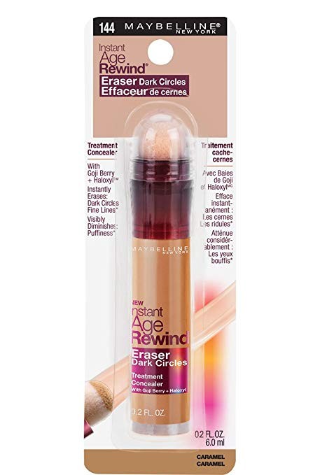 Named America's number 1 concealer, Maybelline's Age Rewind Concealer instantly erases dark circles and fine lines. This fragrance-free liquid under eye concealer is also formulated with goji berry extracts and Haloxyl, which is an active ingredient designed to combat the look of dark circles for a more radiant eye contour area. Packaging may vary