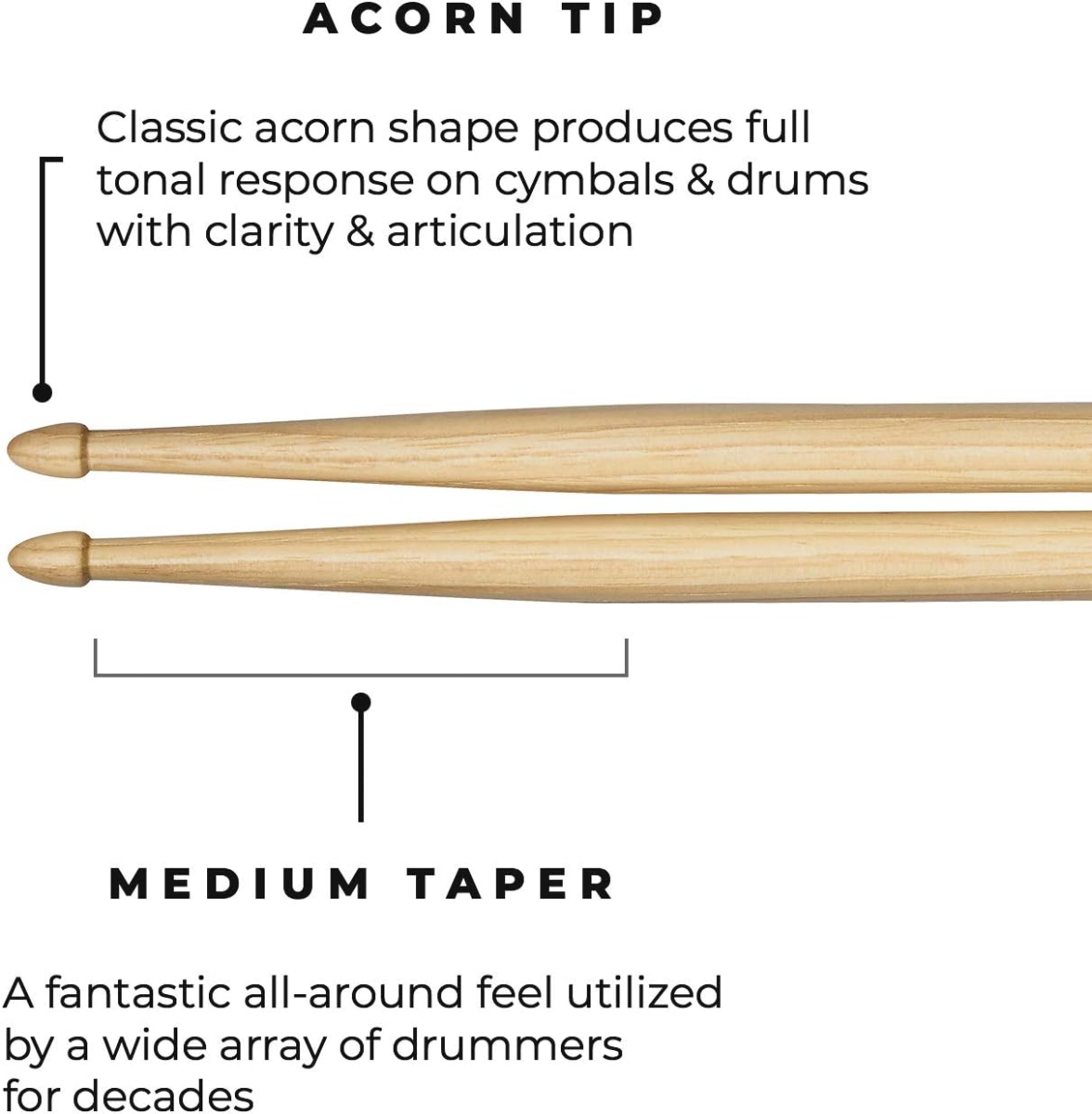 • Acorn shape tip — the classic acorn shape wood tip brings out a bright and full sound on cymbals, and it’s perfect if you’re looking for definition along with a supportive wash that is present through all dynamics without taking over
