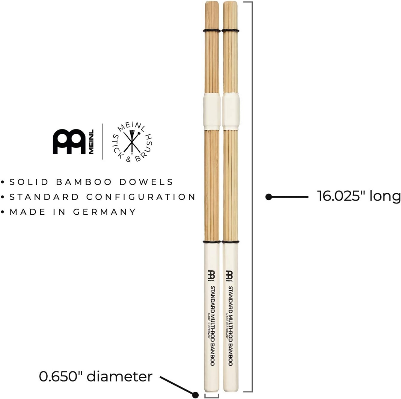 - Specs — sold in pairs, the SB201 Standard Multi-Rod Bamboo has a length of 16.025" with a diameter of 0.650" — the solid bamboo dowels are arranged in a circular shape and feature an extra center wrap for a tighter sound and more durability