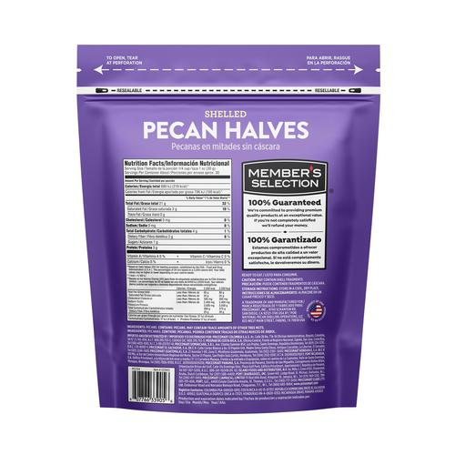 Ready to eat | Store in a cool and dry place | Contains pecans. May contain trace amounts of other tree nuts. Unsalted. Shelled. Halves.