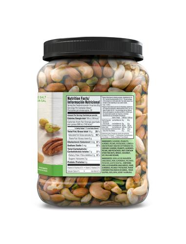 Nut mix containing cashews, peanuts, almonds, pecans, and pistachios. May contain other nuts, wheat, coconut, soy, and milk | Ready to eat | Store in a cool and dry place.