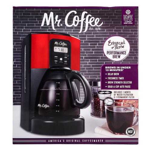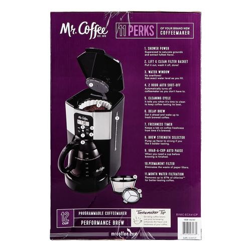 This practical coffee maker prepares up to 12 cups of coffee in 10 minutes. It features a glass carafe, a removable filter basket that makes it quick and easy to clean, a brew intensity selector, a water filtration system, plus a practical Pause 'n Serve option, with up to 30 seconds to pour a cup of coffee while the brewer is still brewing, as well as automatic shut-off in two hours.