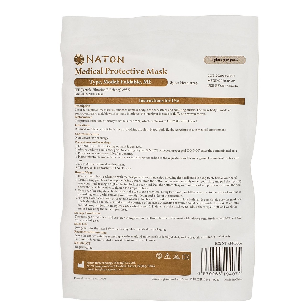 NATON KN95 MEDICAL PROTECTIVE MASK 1ct