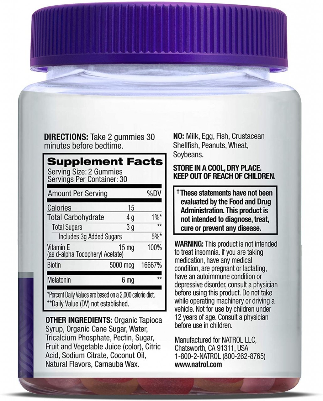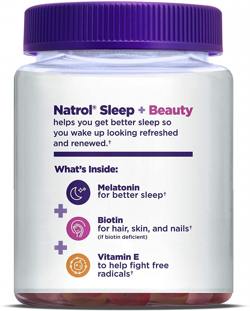 Natrol Sleep + Beauty Gummies offer a powerful blend of Melatonin, Biotin, and Vitamin E to help you get better sleep so you wake up rested and renewed. Better sleep with Melatonin, Hair, skin, and nails support with Biotin (if biotin deficient). Help fight against free radicals with Vitamin E, Plus up your sleep. Natrol Sleep products provide a range of solutions for restful and revitalizing sleep. From the #1 drug-free sleep aid brand, Sleep is 100% drug free and non-habit forming. These great tasting gummies are: Non-GMO, Vegetarian and Gelatin Free, No Synthetic Dyes, No Artificial Flavors, Sweeteners or Preservatives.