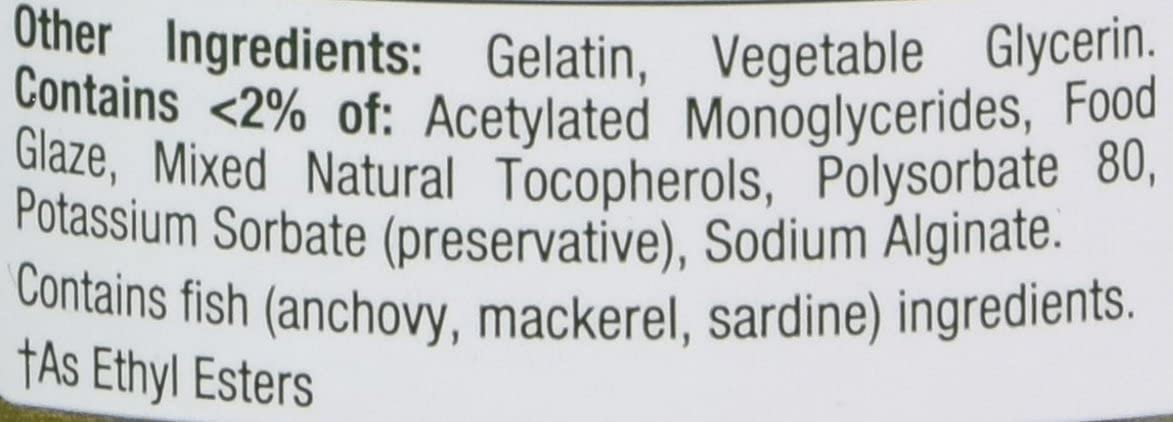 **Supportive but not conclusive research shows that consumption of EPA and DHA Omega-3 fatty acids may reduce the risk of coronary heart disease. One serving of Fish Oil provides 1200 mg total of EPA, DHA and other Omega-3 fatty acids. See nutrition information for total fat and cholesterol content.
