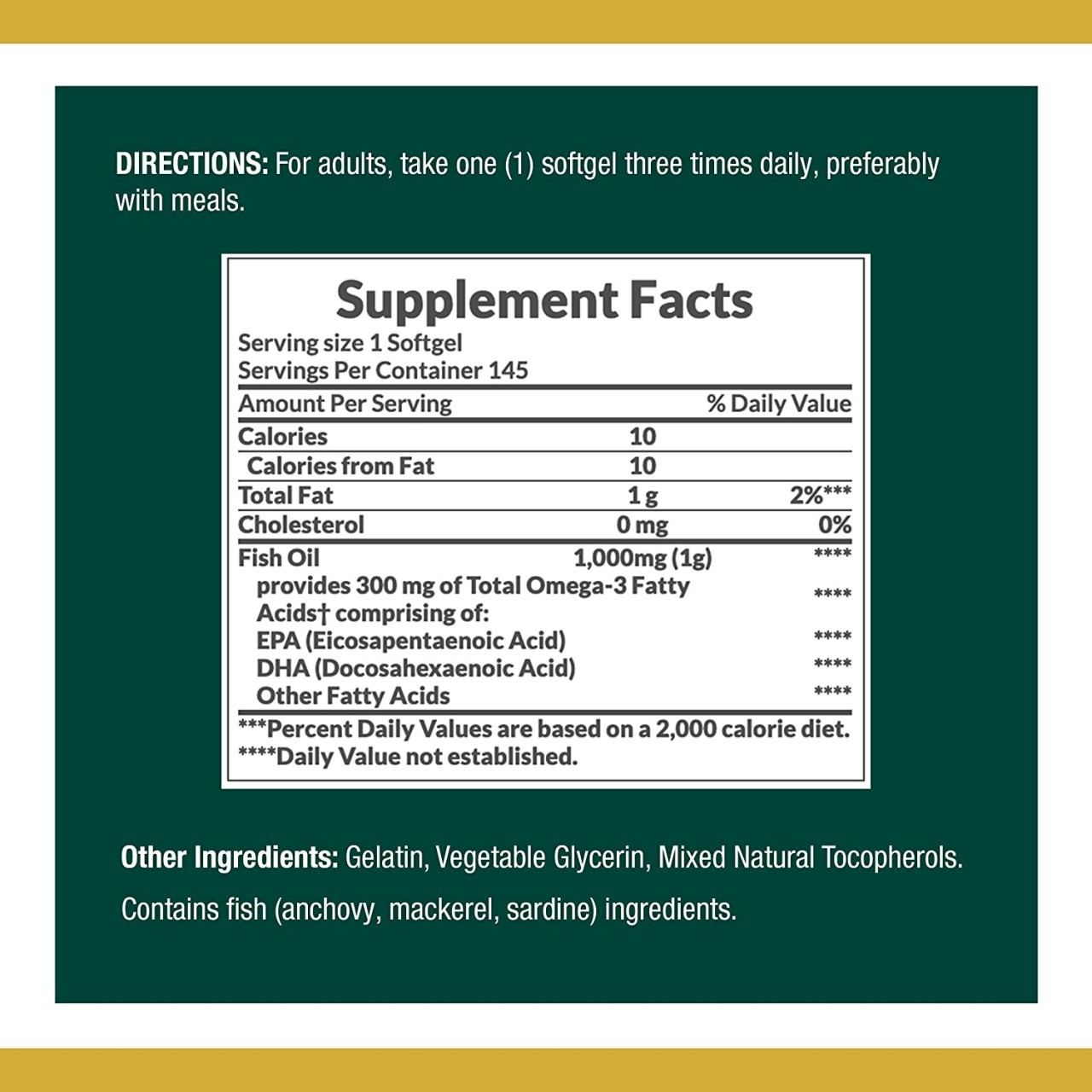 Nature's Bounty Fish Oil, 300 mg of Omega-3, 145 Count