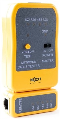 LAN tester specially designed to check modular terminated (RJ45, RJ11, RJ12) cable installations for wire continuity and miswiring. They can be used to verify both data and telephone connection schemes, such as RJ45, 10 Base-T, Token Ring, RJ11/RJ12. With the push of a button, the cable tester will automatically scan all wires and pairs for faults such as open wires, shorts, and crossed wire pairs. Featuring a master unit and a detachable remote module, a single person can remotely verify the condition of cables, both before and after their installation. The easy-to-read LEDs and pin-map help the user identify good connections, as well as any wiring errors quickly and effectively.