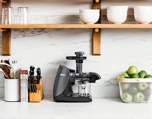 The Ninja® Cold Press Juicer Pro boosts your healthy lifestyle and makes sure you get the nutrients you need from fruits and vegetables in fresh, homemade juices. Its Cold Press Pro technology produces more juice and less foam. Features a compact powerful slow juicer with total pulp control "Choose light juices without pulp or pulp". The Juicer Pro is easy to clean and dishwasher safe.