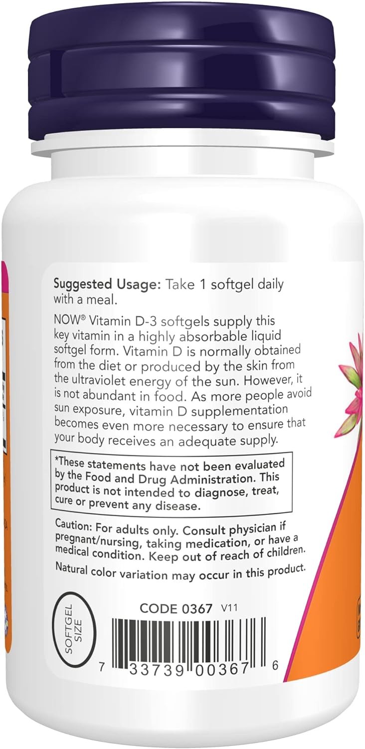 NOW Supplements, Vitamin D3 2000 IU High Potency Structural Support Softgels, 120 Count
